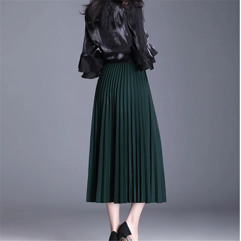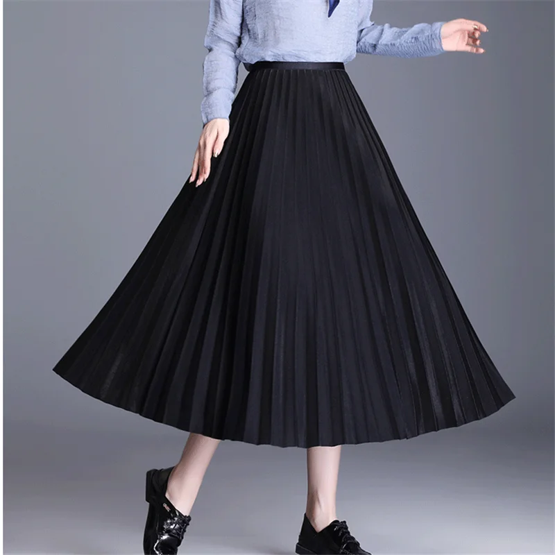 Images of Spring 2020 Women Pleated Skirt New High Waist Elascity Casual Party Skirt Female New Bottoms Fashion Women Long Skirt :